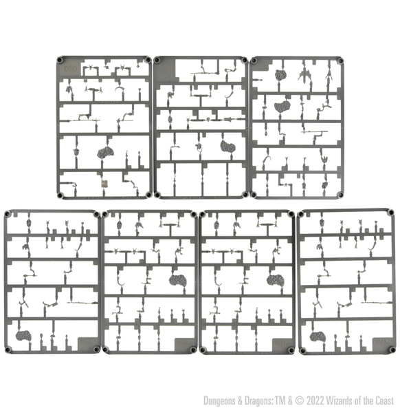 Dungeons and Dragons Frameworks-miniatures are highly detailed miniatures that can be assembled in various ways, and are designed with experienced hobby painters in mind. The miniatures come unassembled and unpainted, providing multiple options for assembling the figure, as well as mixing parts across different figures in the Frameworks line.